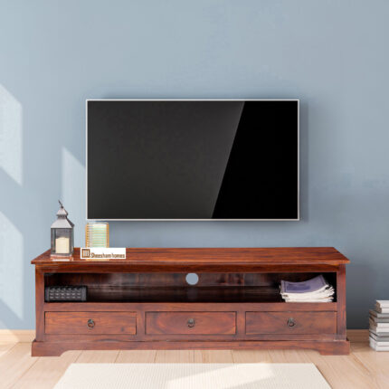 The classic yet stylish TV Unit makes the perfect place for your entertainment space, The natural wood features a lacquered finish making it super appealing, it naturally looks great. This media unit will change outlook of your home and give a lively view to your eyes. It comes with enough storage space of 3 drawers and one open shelf to keep set-top box, DVD player, magazines, newspapers or other décor items.
