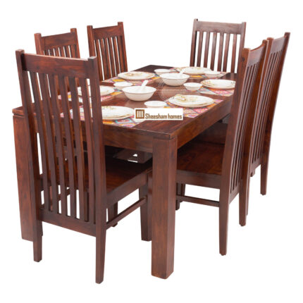 This compact six-seater dining set is one of the stylish pieces of dining tables. Completes the ambience of your dining area, making it more enjoyable. The legs of the dining table are sturdy in nature and can withstand the weight put on it. Chairs with beautiful design comforts you with a healthy and relaxing posture. Therefore, it is a welcoming furniture for everyday use. This range of furniture will not only accentuate the interior of your home, but also will give you a spot at home to sit and have your meal. Experience craftsmanship with our Best Quality Dining Set. Meticulously crafted and designed for enduring elegance, this dining ensemble stands as a testament to the commitment to excellence.