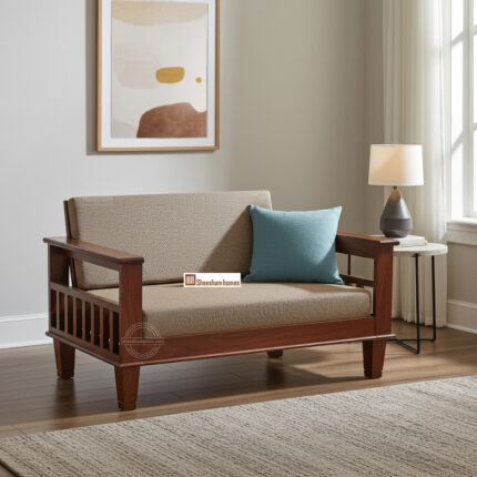 This wooden Sofa Two seater  Crafted from high-quality Sheesham wood, Each piece in this exquisite sofa is a masterpiece, showcasing the natural beauty and durability of Sheesham wood. The sturdy frame not only ensures longevity but also provides a solid foundation, The natural grain of  this wooden Sofa adds a touch of organic beauty, making each piece unique.