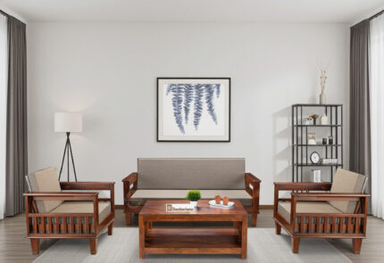 This wooden Sofa Set Crafted from high-quality Sheesham wood, Each piece in this exquisite sofa set is a masterpiece, showcasing the natural beauty and durability of Sheesham wood. The sturdy frame not only ensures longevity but also provides a solid foundation, The natural grain of this wooden Sofa adds a touch of organic beauty, making each piece unique. Whether you’re furnishing a contemporary living space or enhancing a classic interior, Effortlessly elevates your home décor. The rich, warm tones of Sheesham wood infuse a sense of warmth and character into your living space, creating a welcoming ambiance for both family and guests. Invest in the artistry of fine furniture with this wooden sofa – where comfort, durability, and style converge to create a focal point of elegance in your living space. Redefine your home with this stunning addition that stands the test of time.