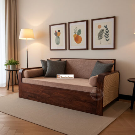 Fusion Sheesham Wood 3 Seater Sofa Cum Bed