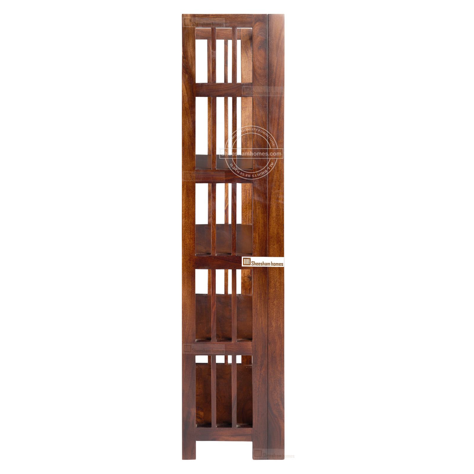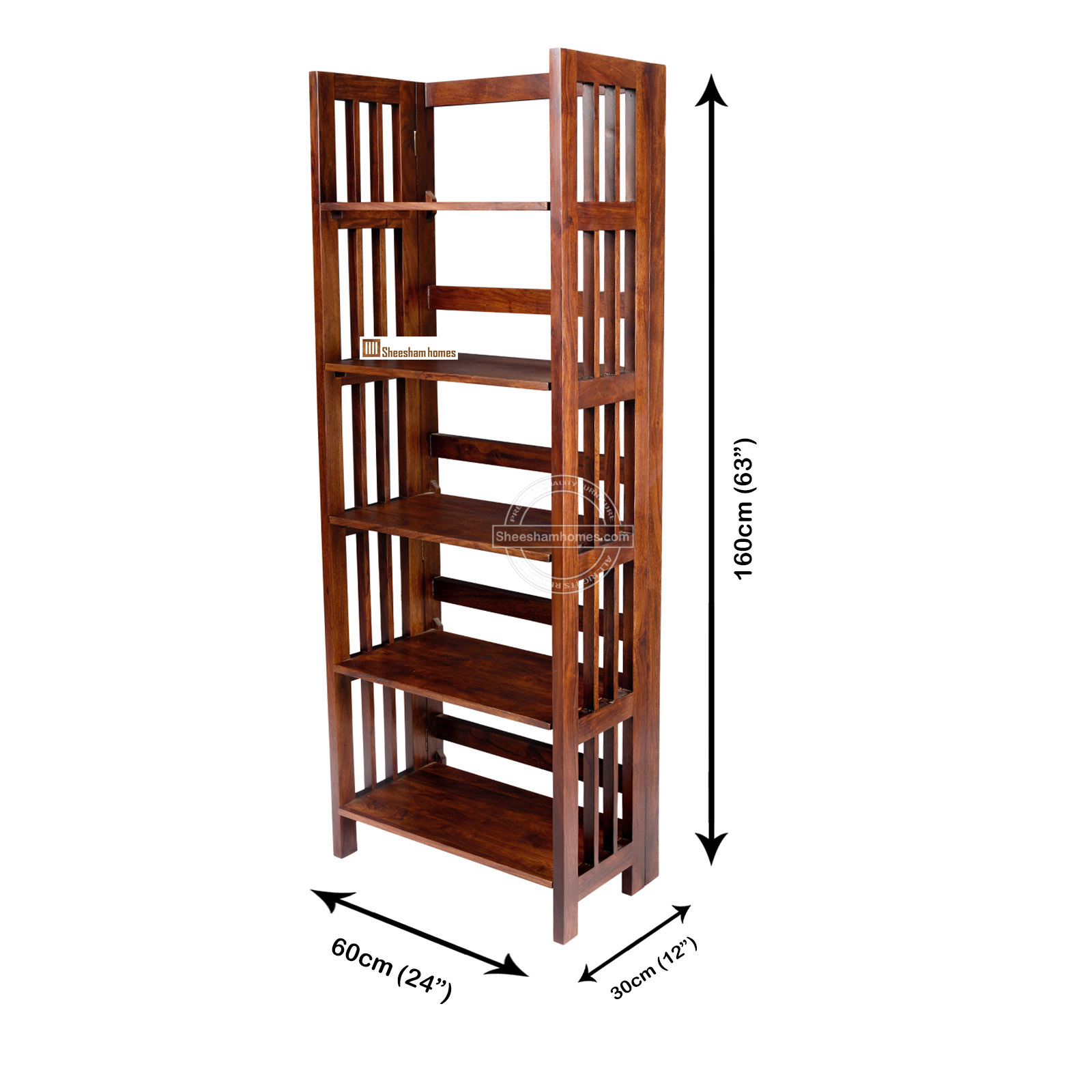 Introducing a space-saving marvel – our Foldable Sheesham Wood Book Rack Stanley with Five Shelves. This versatile piece of furniture is designed to meet the demands of modern living, offering an elegant solution for organizing your book collection. Crafted from premium Sheesham wood, known for its durability and rich grain, this book rack not only adds a touch of sophistication to your space but also provides a practical storage solution. Unfold the possibilities with the unique design that reveals five spacious shelves, allowing you to showcase and organize your books, decor, or collectibles. The foldable feature adds a layer of flexibility, making it easy to move or store when needed.
