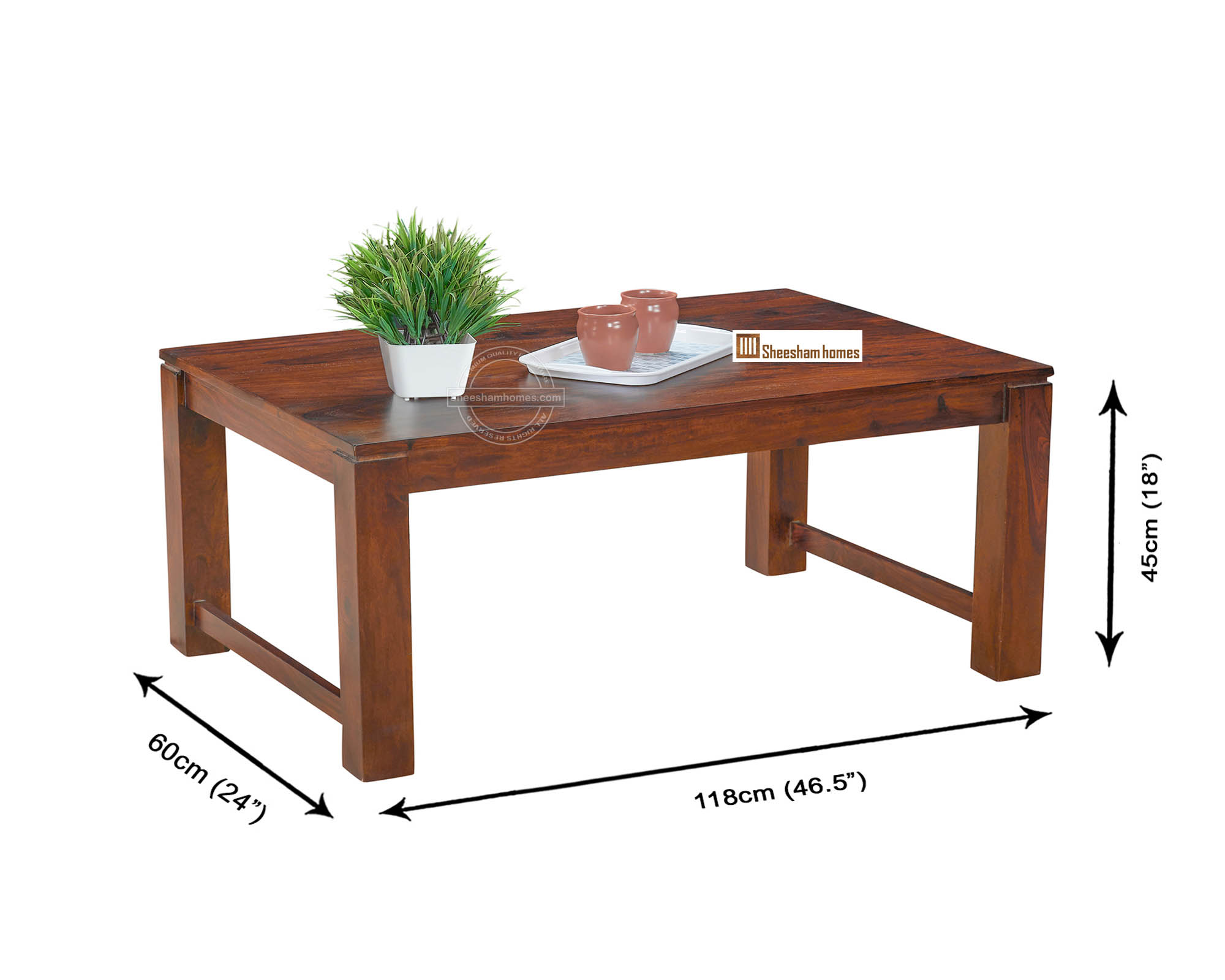 The table is made of sheesham wood making it durable and ensures the strength to bear heavy load. This table will change outlook of your home and give a lively view to your eyes. With rectangle shaped top, the table is long lasting and sheer quality of the tea table is incomparable. The natural luster of the wood makes it uniquely fashionable. Moreover solid wood is a reliable material for indoor furniture purpose.