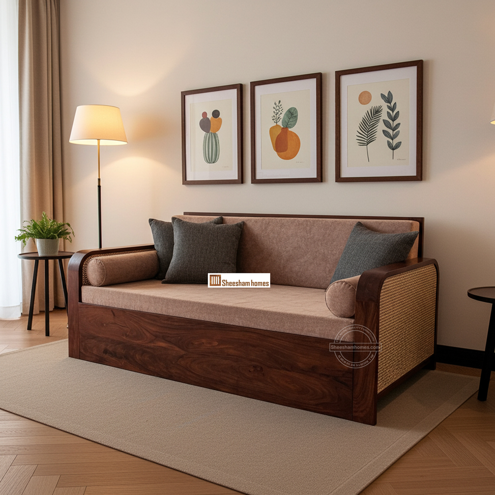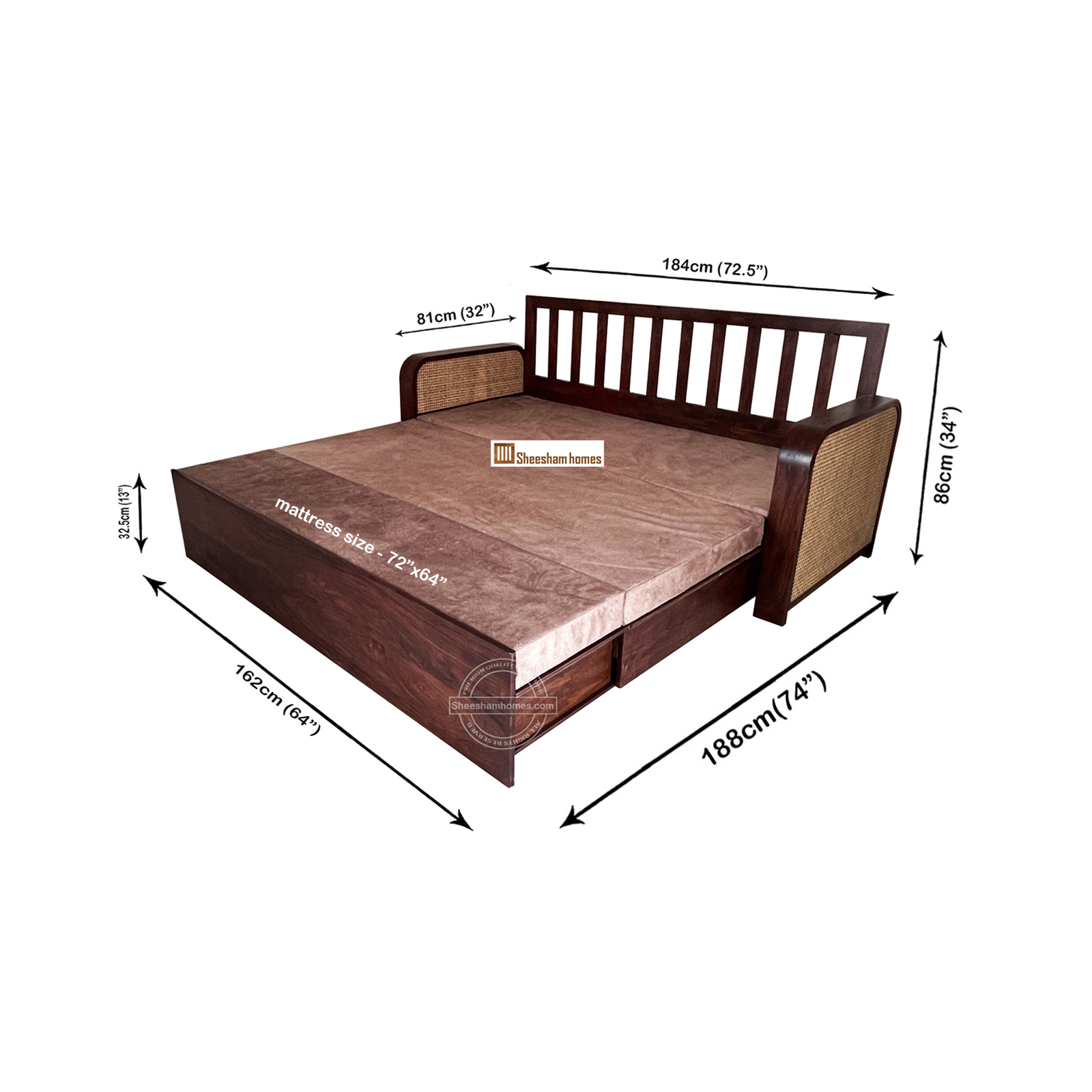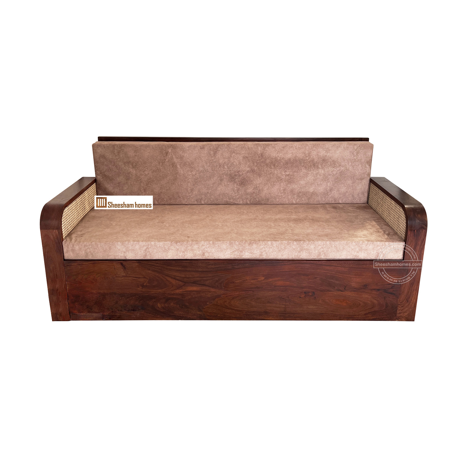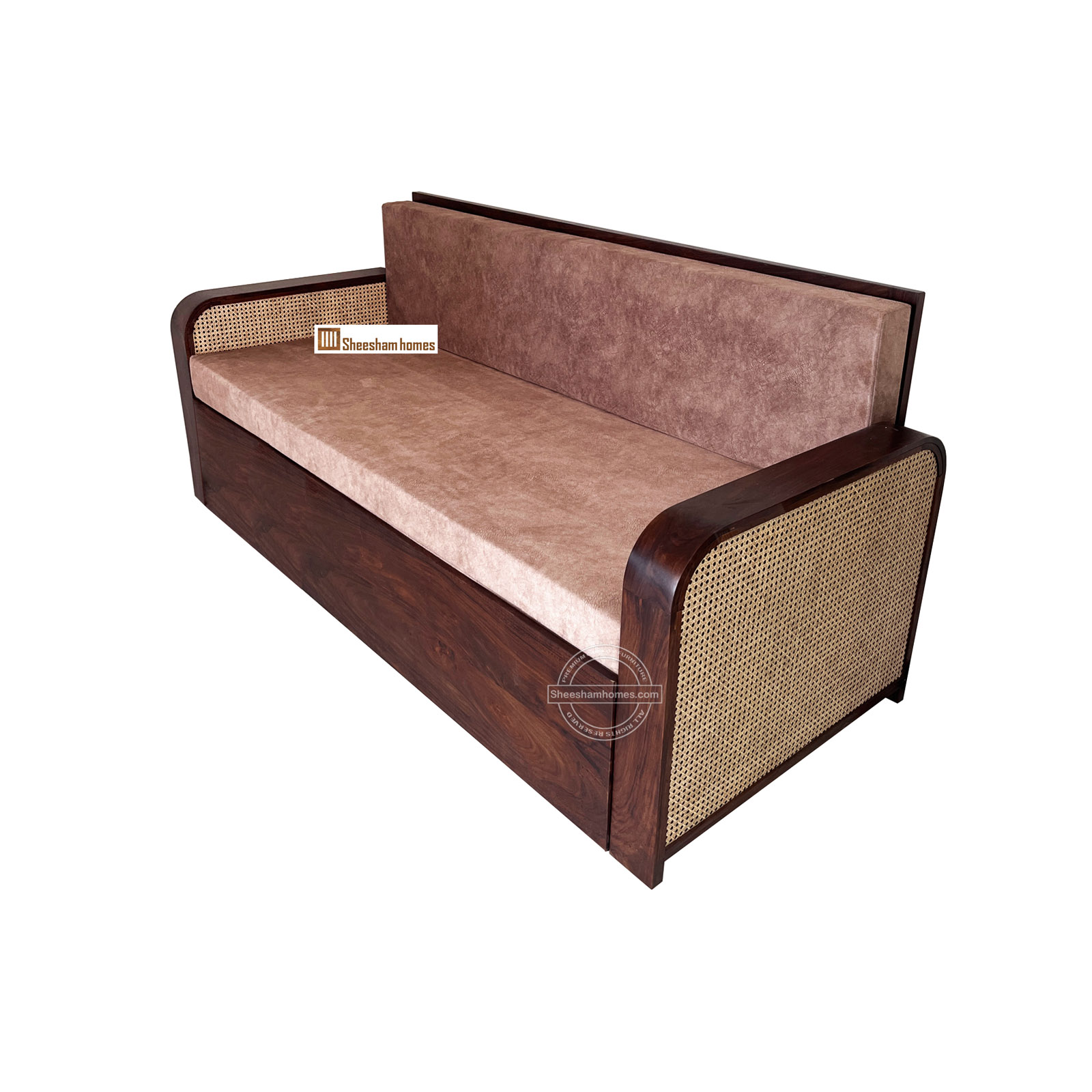 - feature Solid Sheesham Wood Frame, Duel Functionality, Elegant Cane Accent, Premium Upholstery