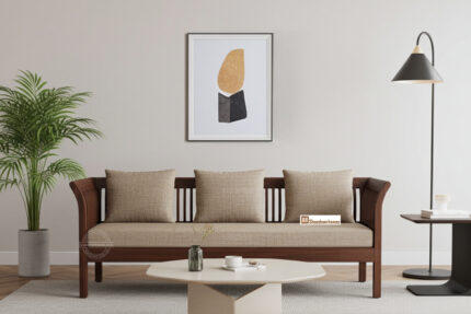 Experience the epitome of comfort and style with our wooden Sofa three seater : Graceful Curves, Compact Size & Comfort . This masterpiece in Sheesham wood combines elegant design with space-saving solutions. The curved back adds a touch of sophistication, while its compact size makes it an ideal choice for any living space. Elevate your home with the perfect blend of aesthetics and functionality. Discover the joy of relaxation in the embrace of our prime sofa.