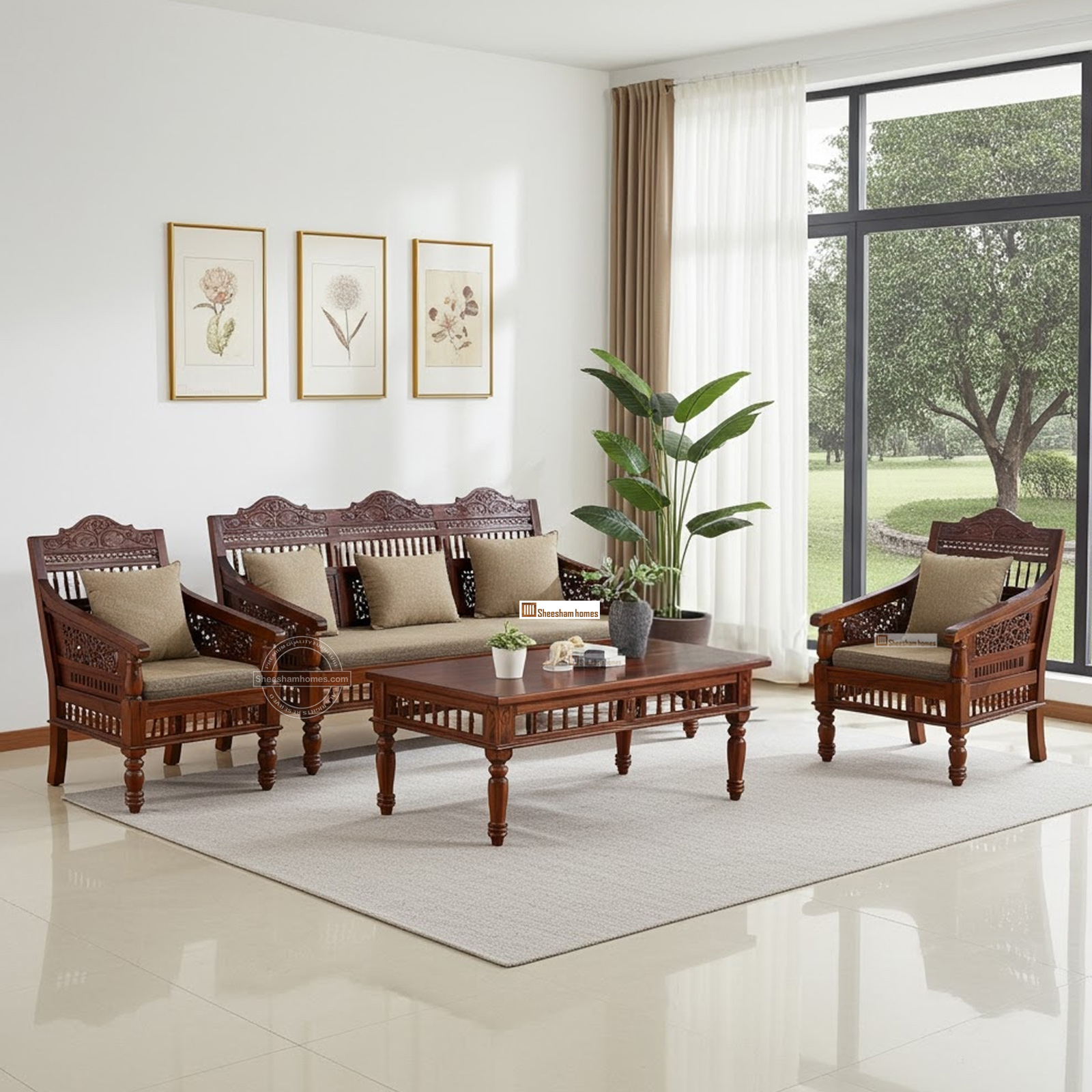 A masterpiece of craftsmanship, Experience the rich heritage of our traditional design sofa set “NIRMAAN”, features intricate hand-carved detailing that reflects the beauty of Rajasthani artistry. Designed to bring royal elegance and warmth to your living space.