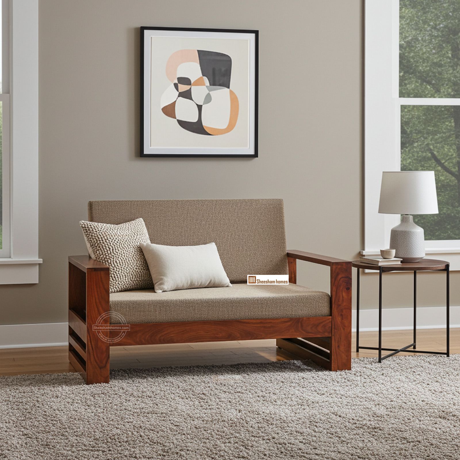 This wooden Sofa Two seater Crafted from high-quality Sheesham wood, Each piece in this exquisite sofa is a masterpiece, showcasing the natural beauty and durability of Sheesham wood. The sturdy frame not only ensures longevity but also provides a solid foundation, The natural grain of this wooden Sofa adds a touch of organic beauty, making each piece unique.