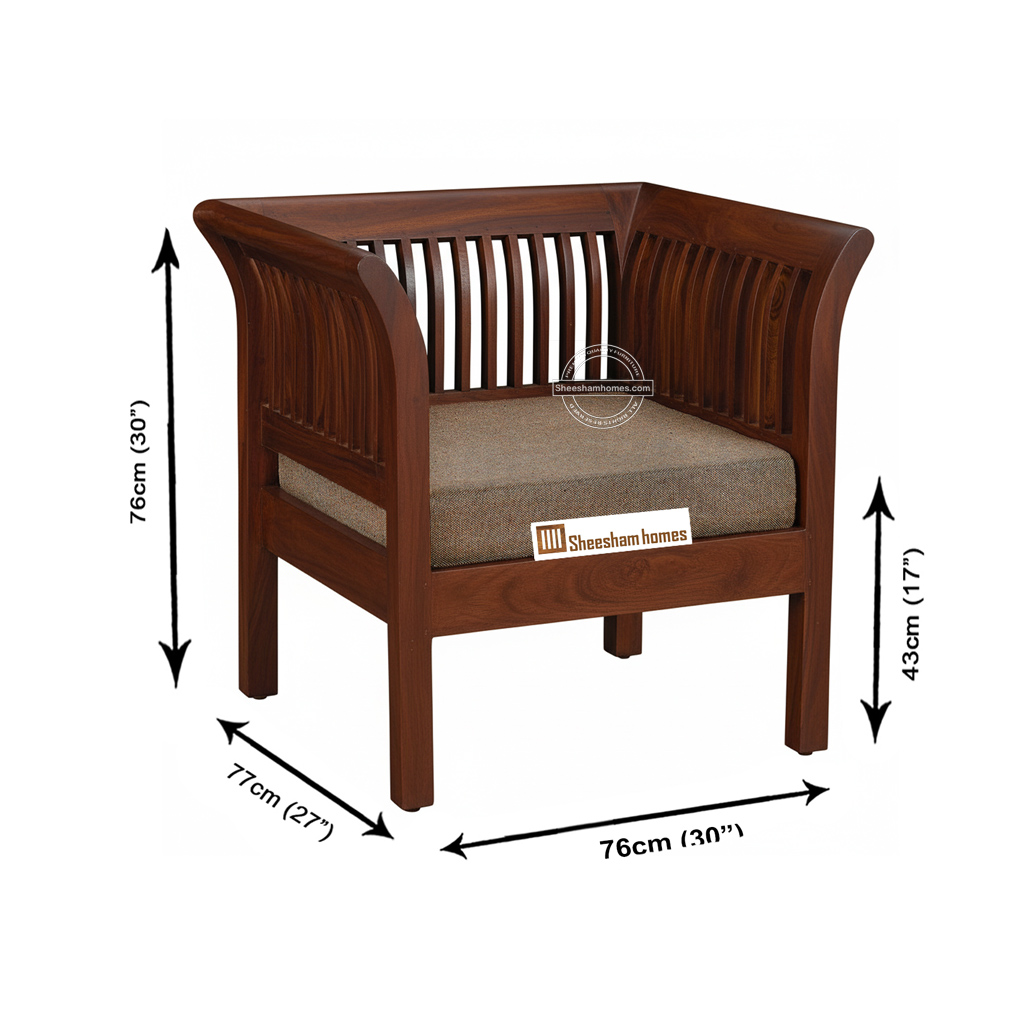 This wooden Sofa Crafted from high-quality Sheesham wood, Each piece in this exquisite sofa is a masterpiece, showcasing the natural beauty and durability of Sheesham wood. The sturdy frame not only ensures longevity but also provides a solid foundation, The natural grain of this wooden single seater Sofa adds a touch of organic beauty, making each piece unique.